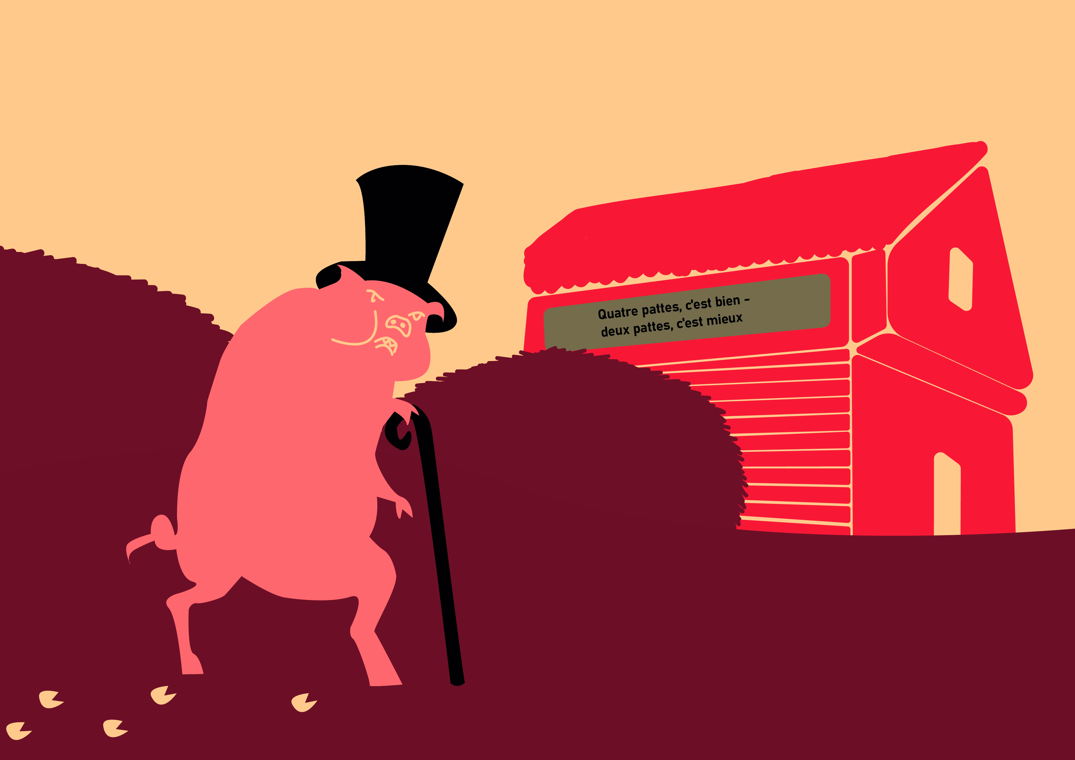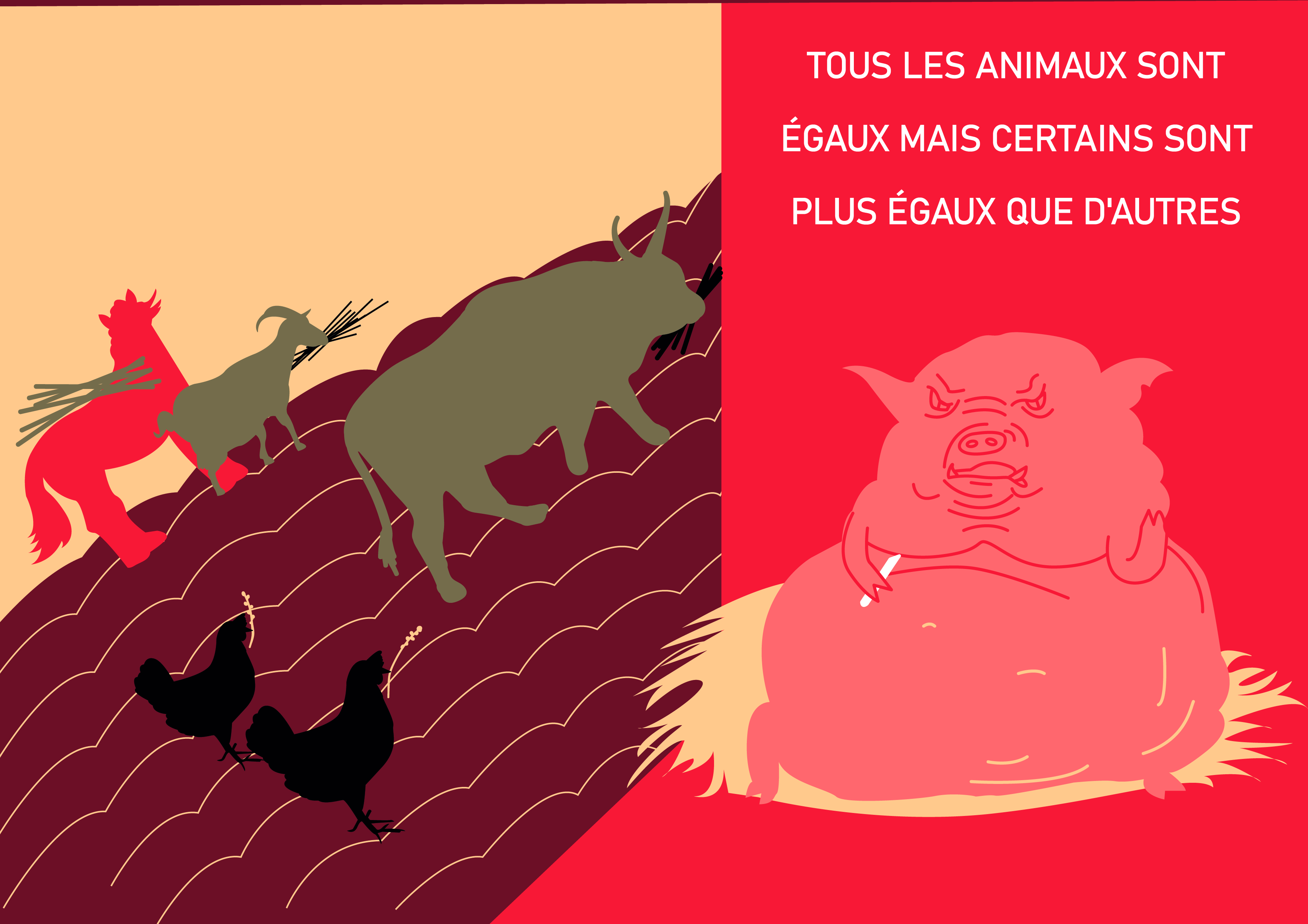 Це видання ілюструє відому книгу Джорджа Орвелла - Ферма тварин. За допомогою накладання сторінок, читач може зрозуміти всі приховані сенси та паралелі з книги. Видання є чудовим доповненням до оригінальної книги, щоб зуміти ширше поглибитись в її суть.