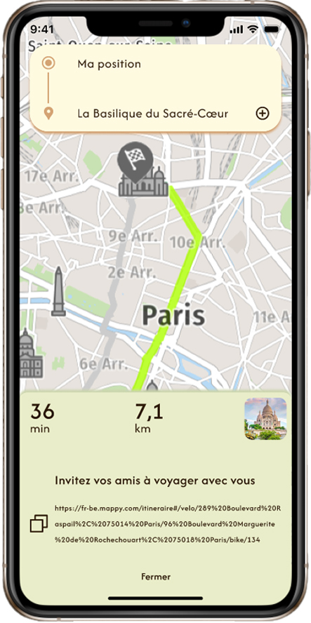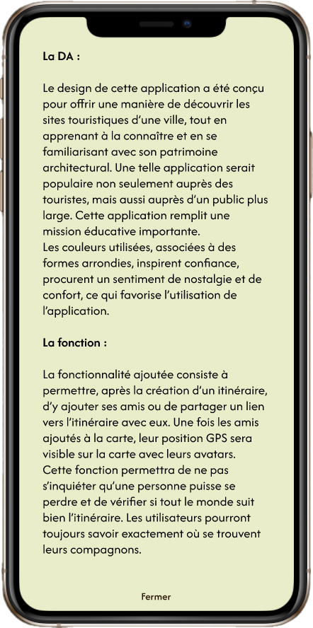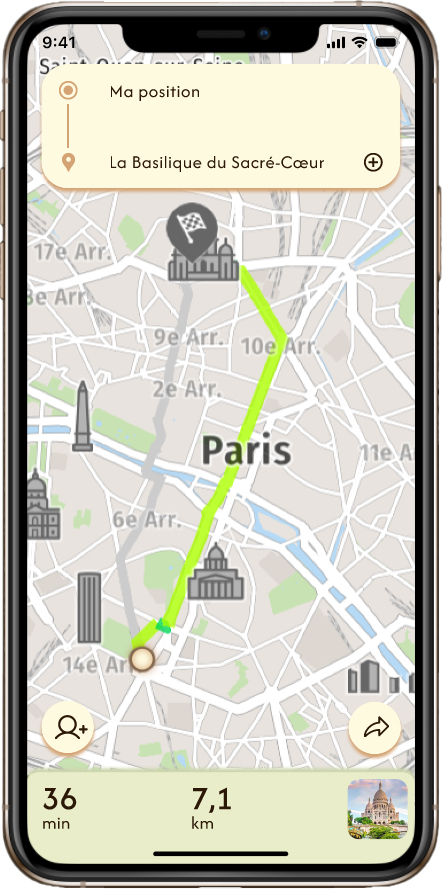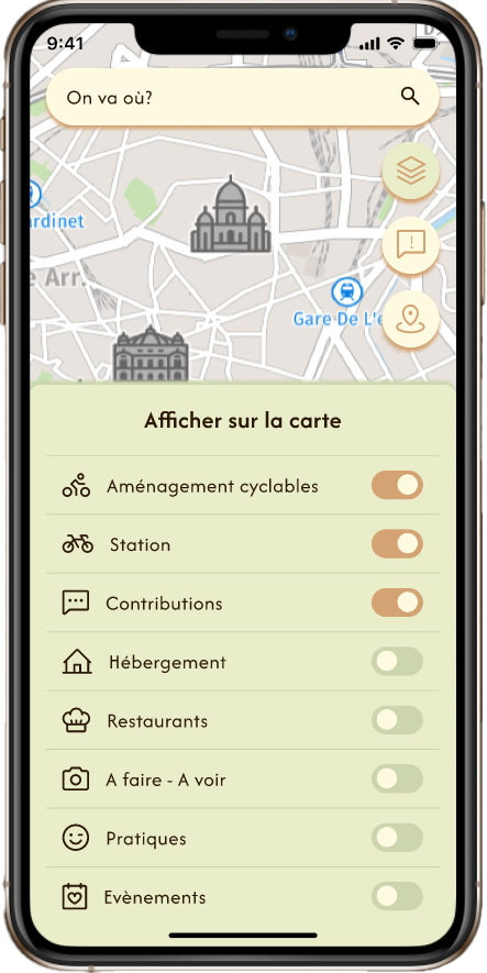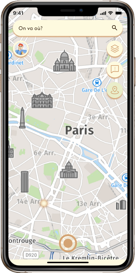 C'est un projet de design UX/UI. Son objectif était de repenser l'interface de l'application Géovélo, qui vise à coordonner et à assister les cyclistes tout au long de leur parcours. Lors de la refonte, il fallait ajouter une nouvelle fonctionnalité utile à l'application. Ma fonctionnalité consiste à permettre la création de parcours communs avec des amis, tout en affichant leur position GPS sur une carte partagée, afin de ne pas les perdre de vue.