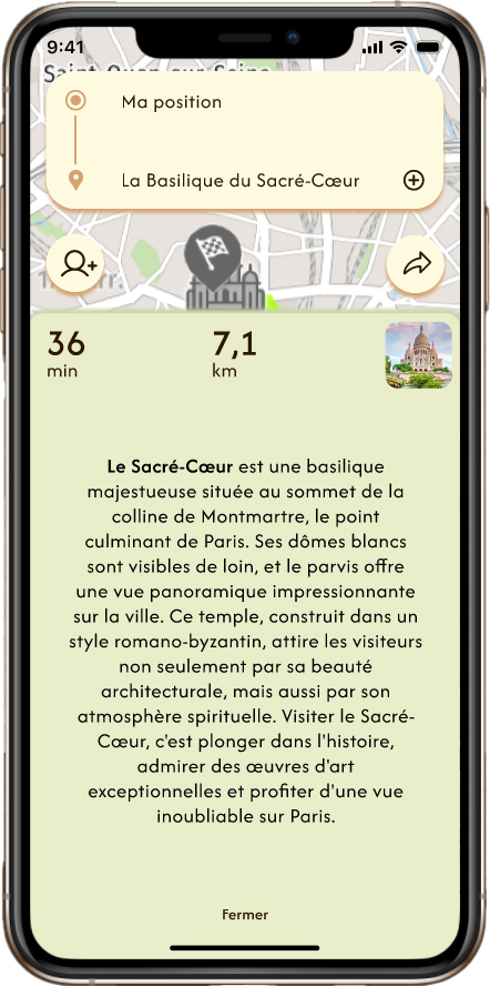 This is a UX/UI design project aimed at redesigning the interface for the Géovélo app, which focuses on coordinating and assisting cyclists during their routes. The redesign task involved adding a new useful feature to the app. My contribution was the implementation of a feature that allows users to create shared routes with friends, displaying their GPS locations on a shared map to ensure they stay within sight of each other.
